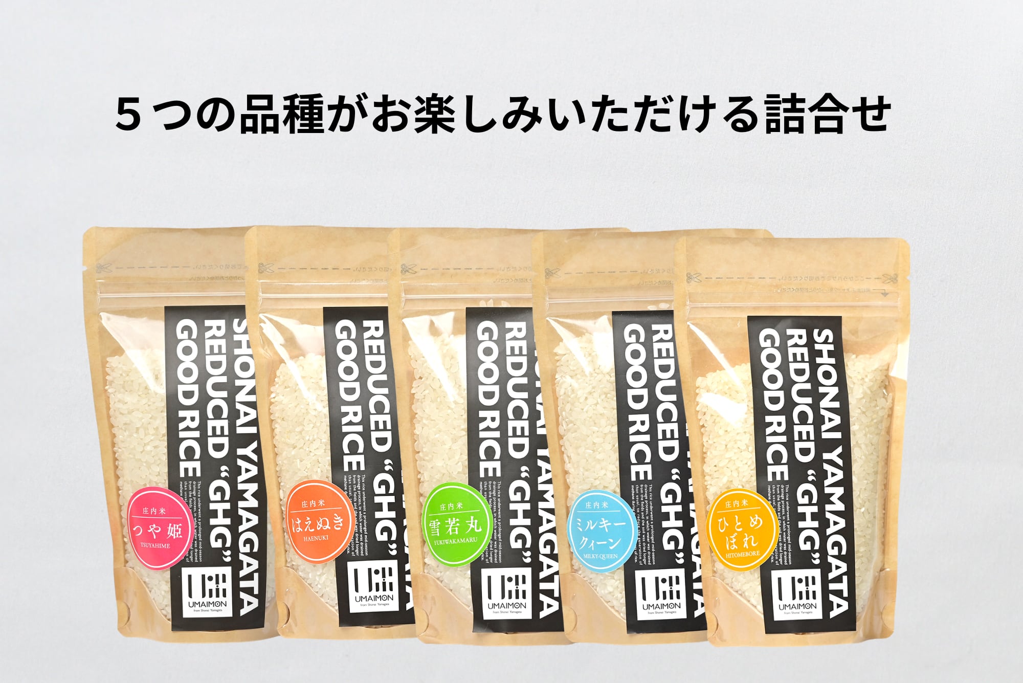 庄内で育った“本当においしいお米”を詰め合わせた、UMAI MON オリジナルギフトをご用意しました。