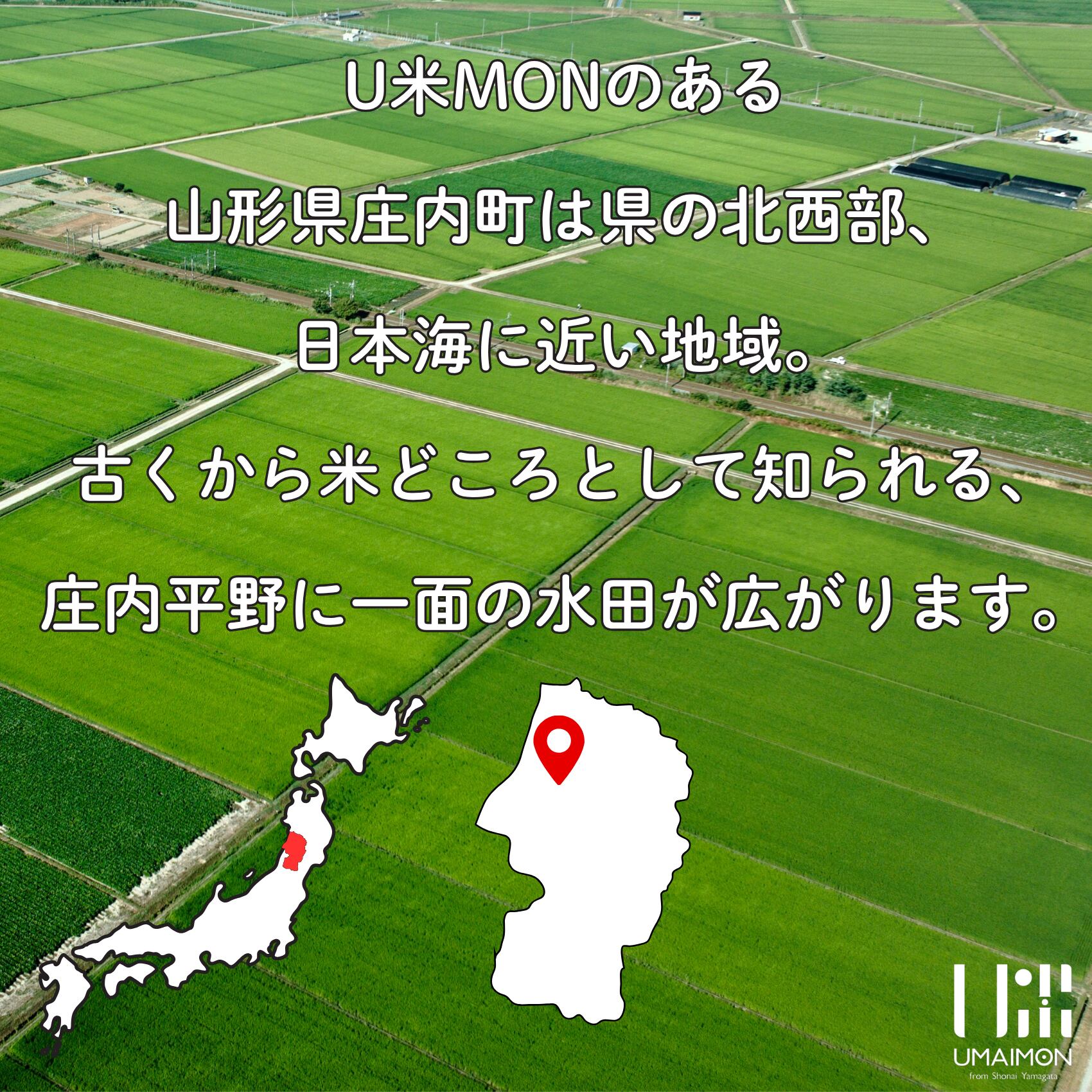 最上川からの取水と活火山鳥海山からのミネラルたっぷりの土壌で美味しいお米の産地です。